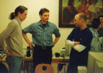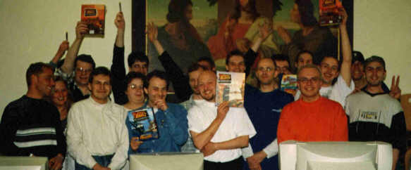 Orodruin testet Jochen und Marcs Standhaftigkeit: kein Wort war den Mitarbeitern von Sunflowers zum Thema "Nachfolger von Anno 1602" zu entlocken. Boss Wilfried Reiter hatte ein Machtwort gesprochen: Androhung von lebenslänglich Pixelzählen! Hinten rechts noch PUSH und Peach | |||||||||||||||||||||||||||||||||||||||||||||||||||||||||||||||||||||||||||||||