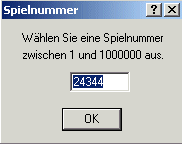 Beim weiteren Linksklick auf "Spiel wählen" oder durch Drücken der Taste F3 auf der Tastatur kommt man zur Eingabemöglichkeit für die Spielenummer, für das "Bild". Wir geben "1" ein und bekommen dieses Bild: |