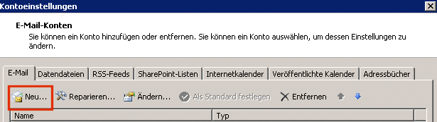 Bei den Kontoeinstellungen wählen wir "Neu" | |||||||||||||||||||||||||||||||||||||||||||||||||||||||||||||||||||||||||||||||||||