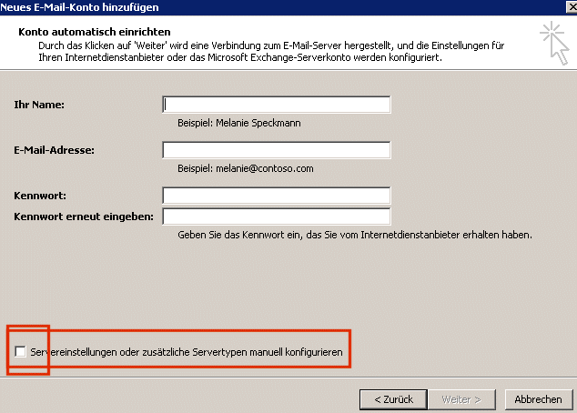 Der Punkt bei "Neues E-Mail-Konto hinzufügen" ist voreingestellt, den lassen wir wo er ist | |||||||||||||||||||||||||||||||||||||||||||||||||||||||||||||||||||||||||||||||||||